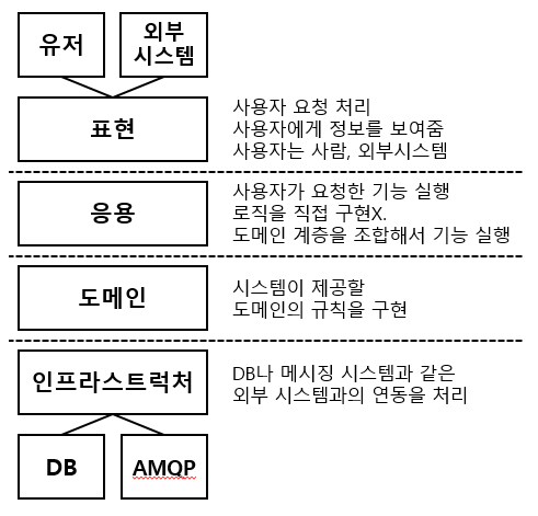 도메인 계층은 도메인의 핵심 규칙을 구현. 예를 들어 주문 도메인의 경우 '출고 전에 배송지를 변경할 수 있다'는 규칙을 구현한 코드가 도메인 계층에 위치함. 이런 도메인 규칙을 객체 지향 기법으로 구현하는 패턴이 도메인 모델 패턴.